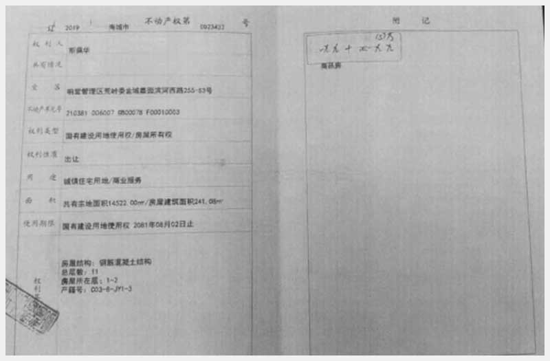 名稱:海城市響堂管理區(qū)荒嶺委金域嘉園濱河西路255-S1、S2、S3號(hào)房產(chǎn) 面積:有證:538.22㎡;無(wú)證:223㎡ 瀏覽次數(shù):1001
