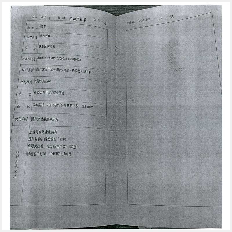 名稱:鞍山市鐵東區(qū)湖南街175號(hào)4處房產(chǎn) 面積:135.74㎡—165.84㎡ 瀏覽次數(shù):202