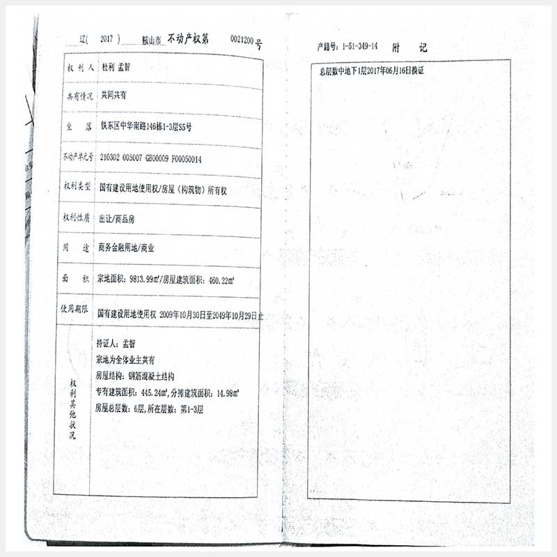 111號 鞍山市鐵東區(qū)中華南路146棟1-3層S5號房產(chǎn)