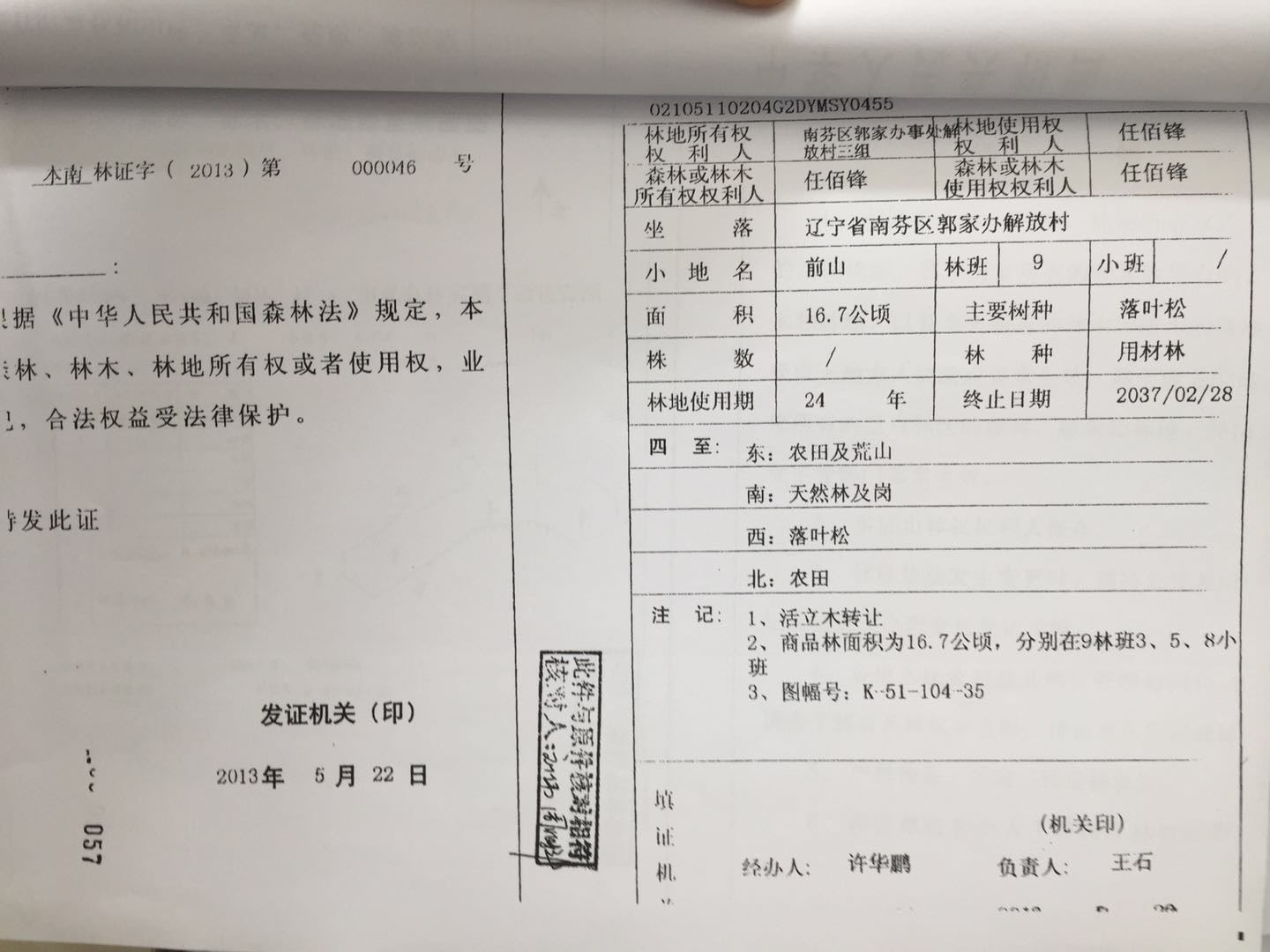 15號 本溪市南芬區(qū)郭家辦事處解放村林地31處