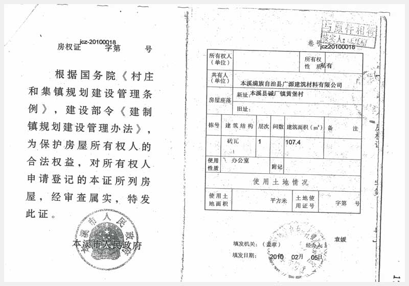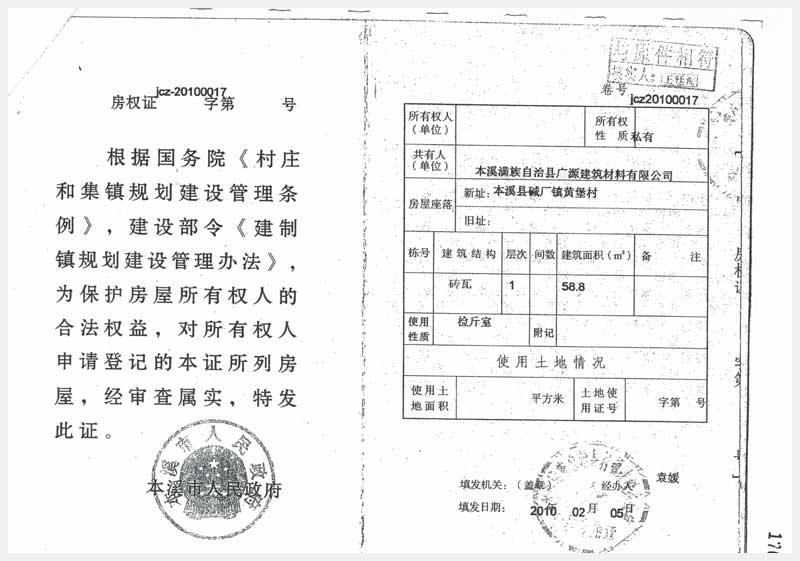 62號(hào) 本溪縣堿廠鎮(zhèn)黃堡村房產(chǎn)7處、土地2處及設(shè)備25項(xiàng)