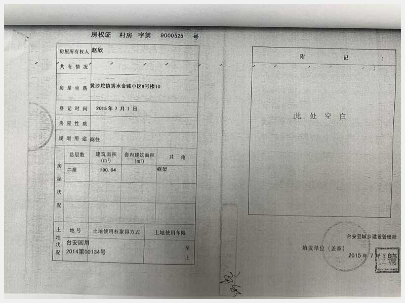 地址:黃沙坨鎮(zhèn)秀水金城小區(qū) 標(biāo)的號(hào):48