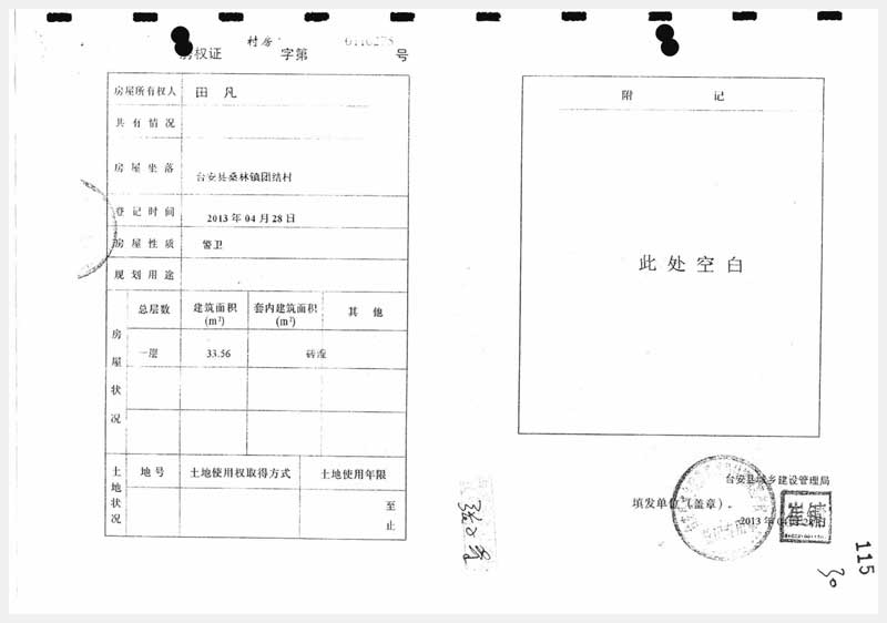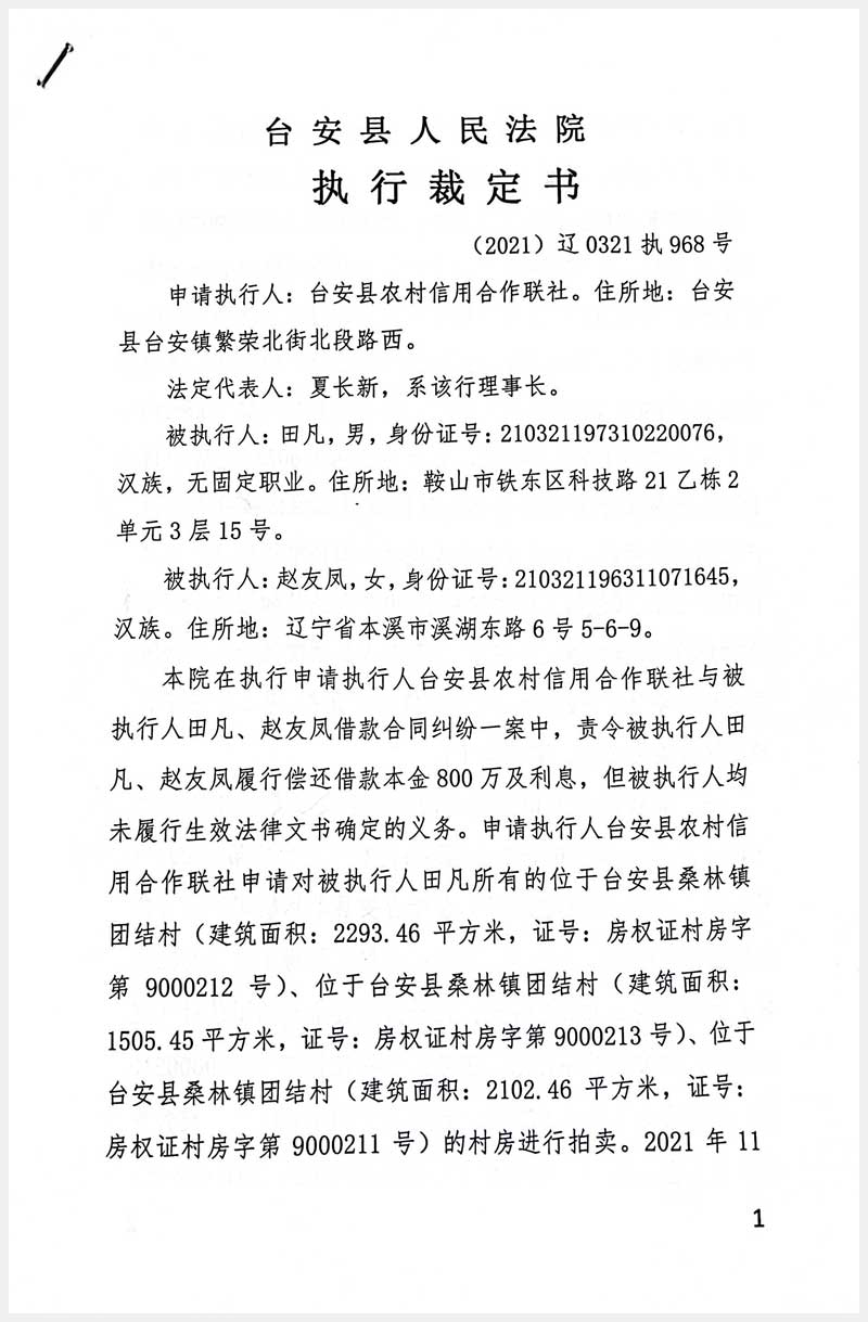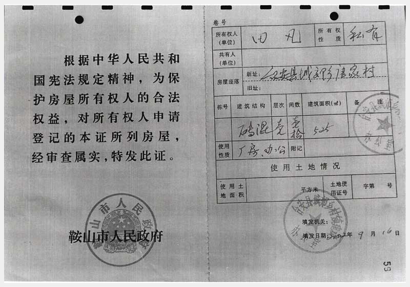 91號 臺安縣桑林鎮(zhèn)團(tuán)結(jié)村房產(chǎn)及國有土地使用權(quán)