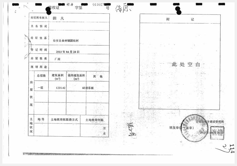 地址:臺安縣桑林鎮(zhèn)團(tuán)結(jié)村 標(biāo)的號:91