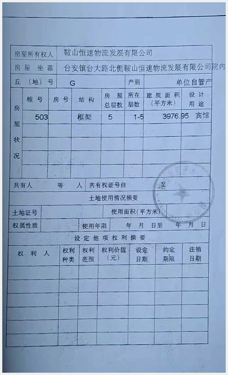 70號 臺安鎮(zhèn)臺大路北側(cè)鞍山恒速物流發(fā)展有限公司院內(nèi)房產(chǎn)