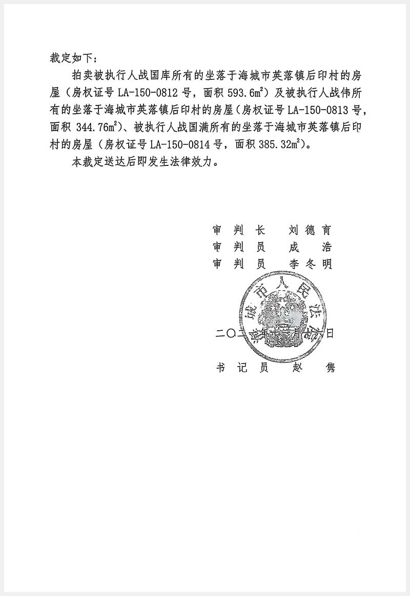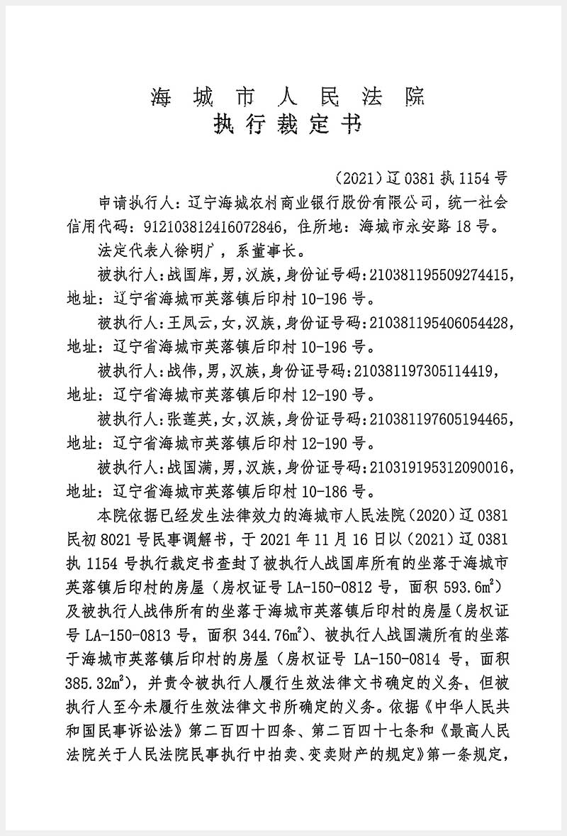 193號(hào) 海城市英落鎮(zhèn)后窨村5處房產(chǎn)