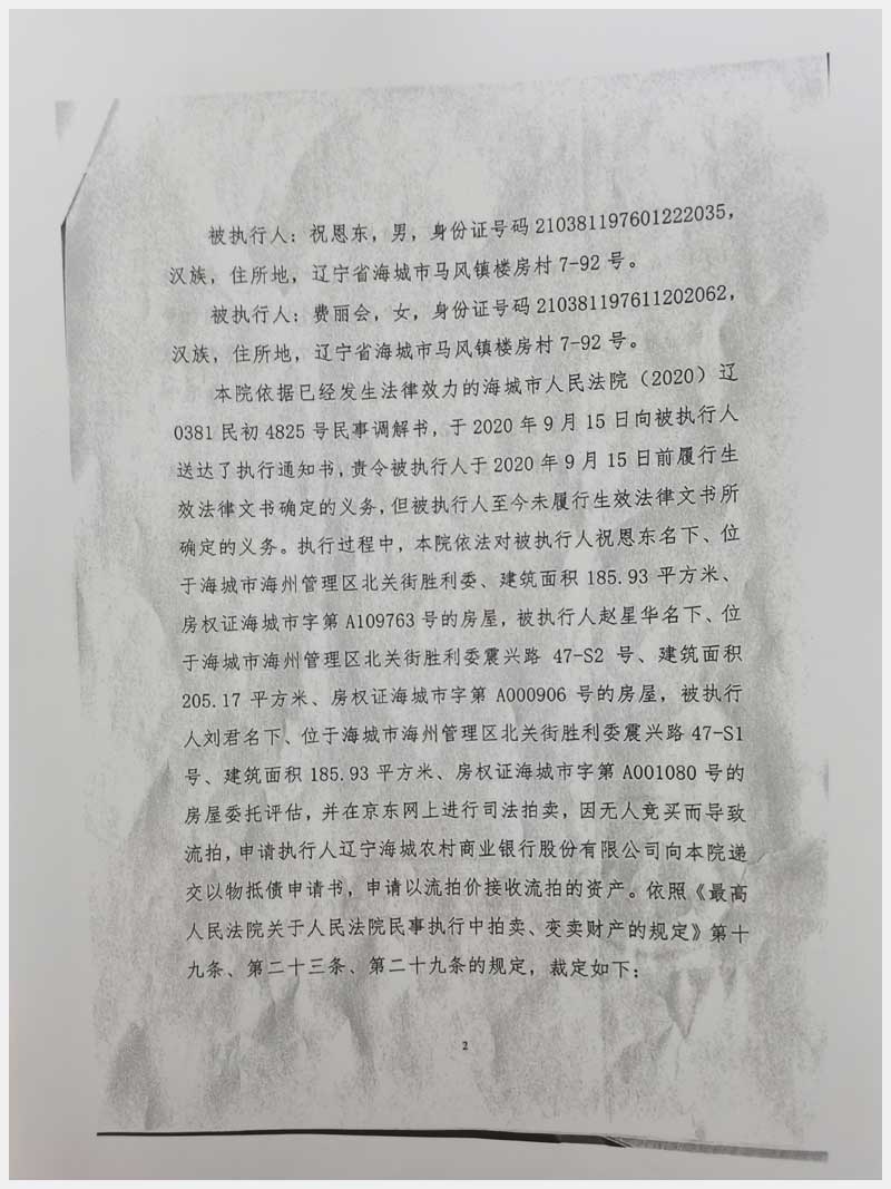 201號(hào) 海城市海州管理區(qū)北關(guān)街勝利委震興路47號(hào)3處房產(chǎn)