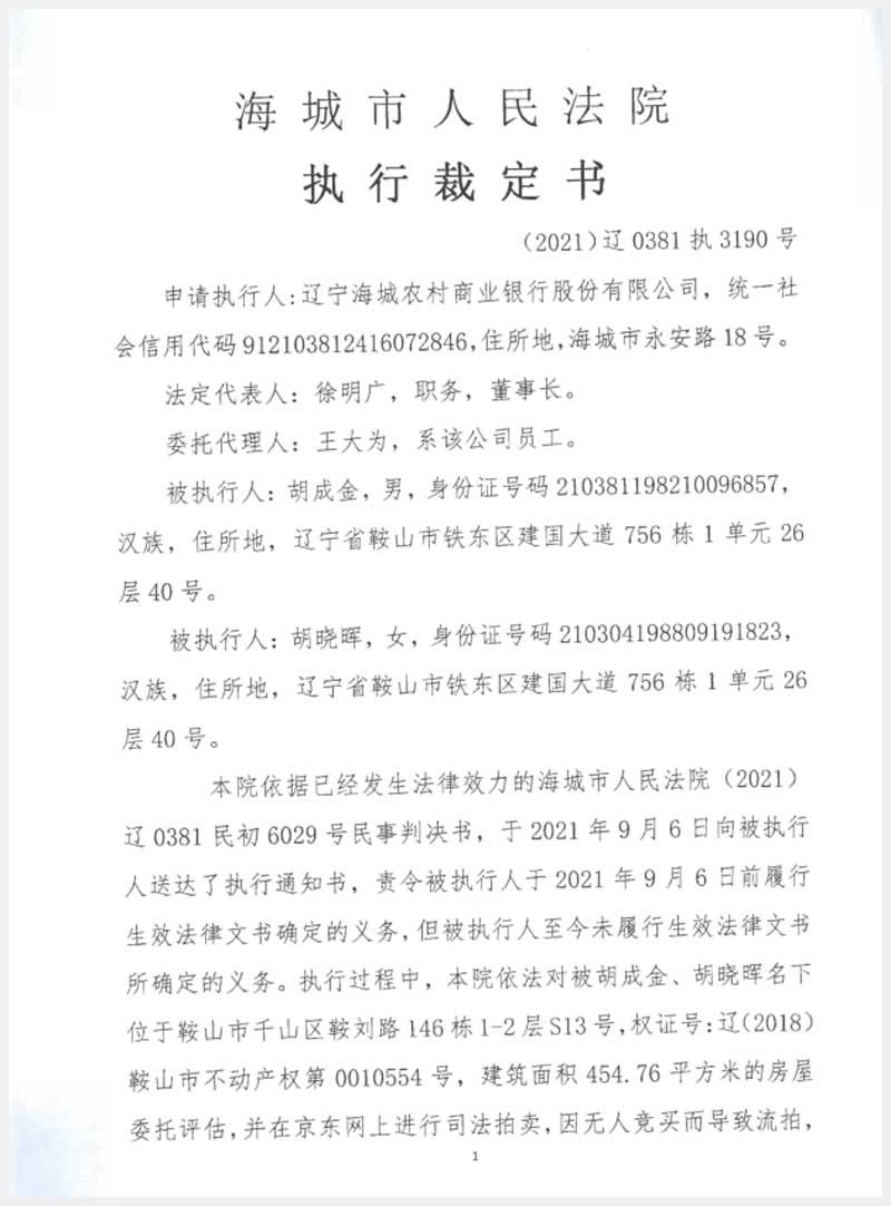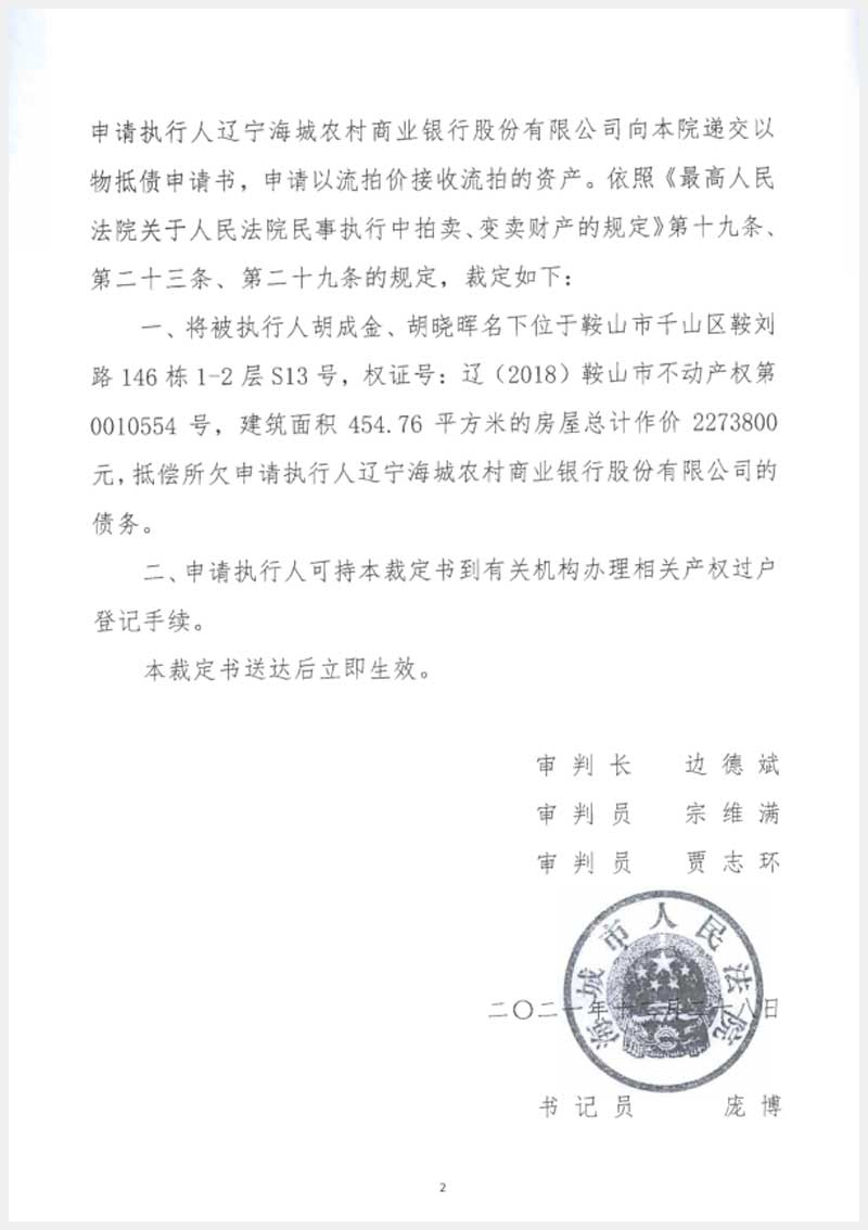 地址:鞍山市千山區(qū)鞍劉路148棟 標的號:243