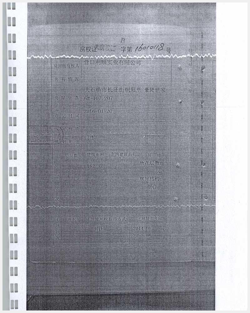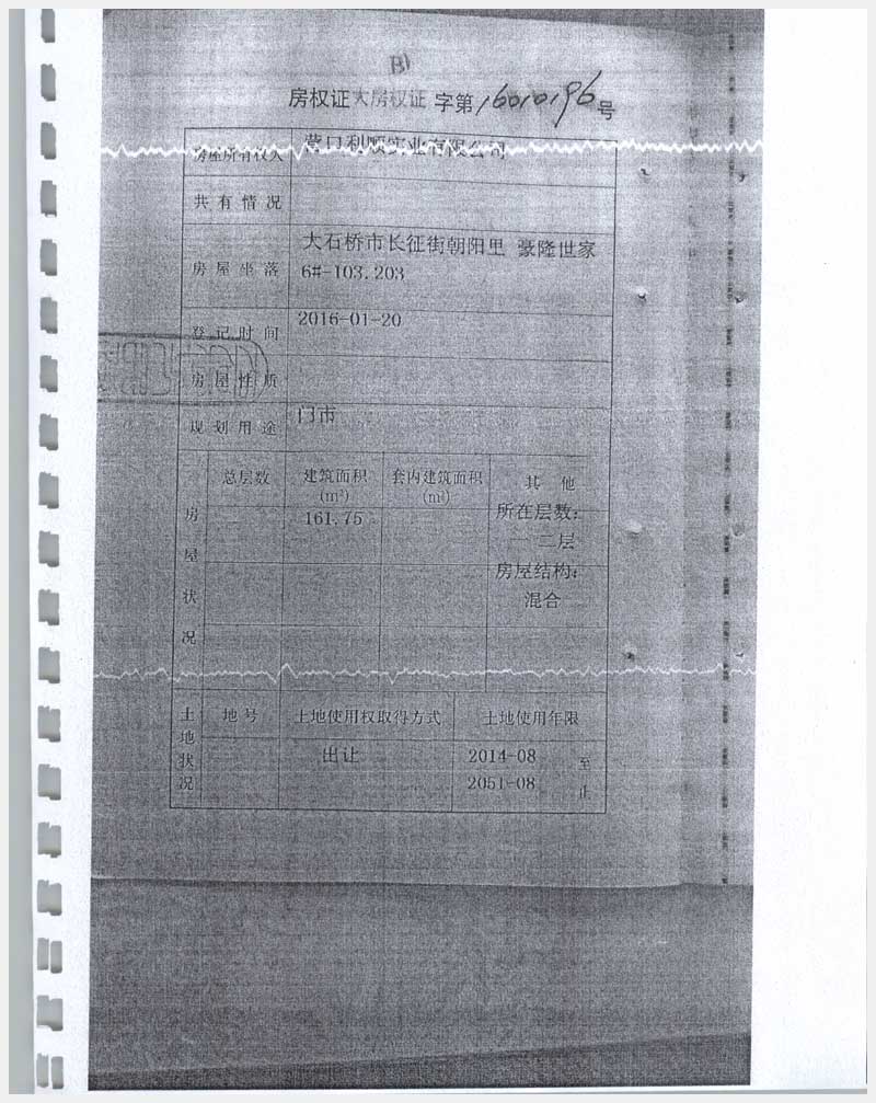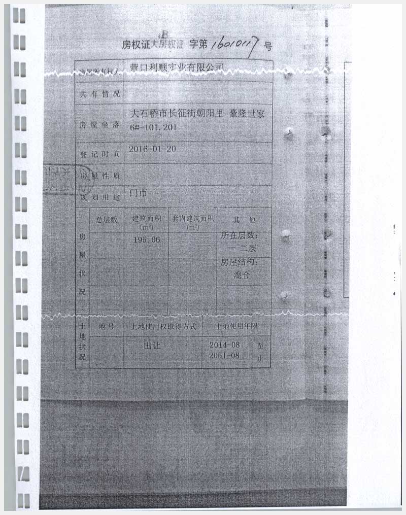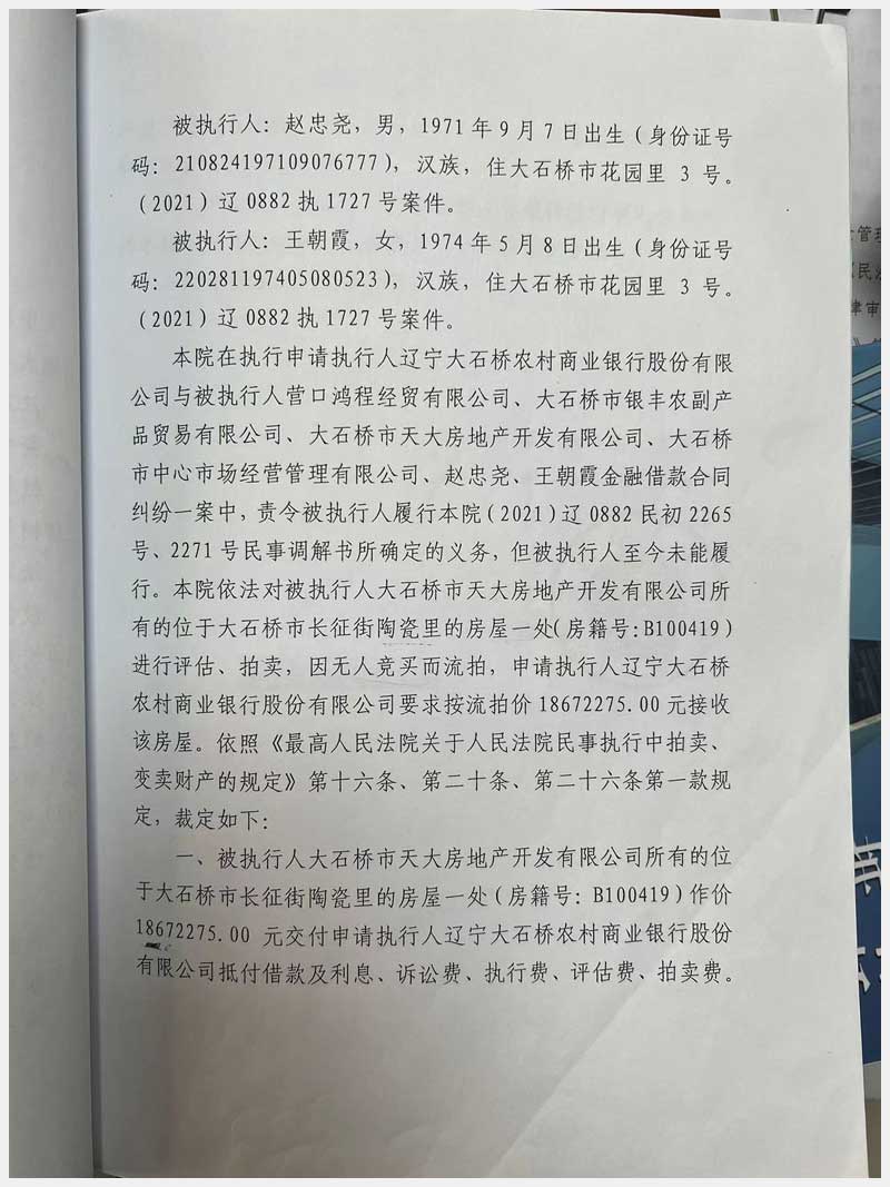 地址:大石橋市長征街朝陽里豪隆世家 標(biāo)的號:8