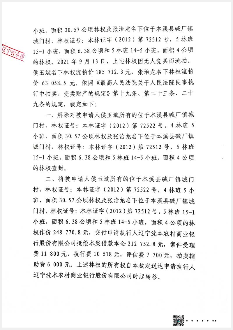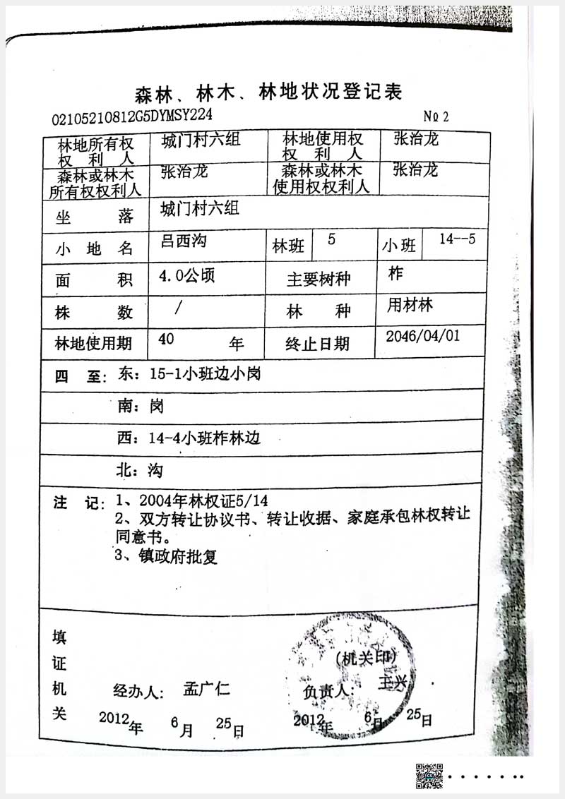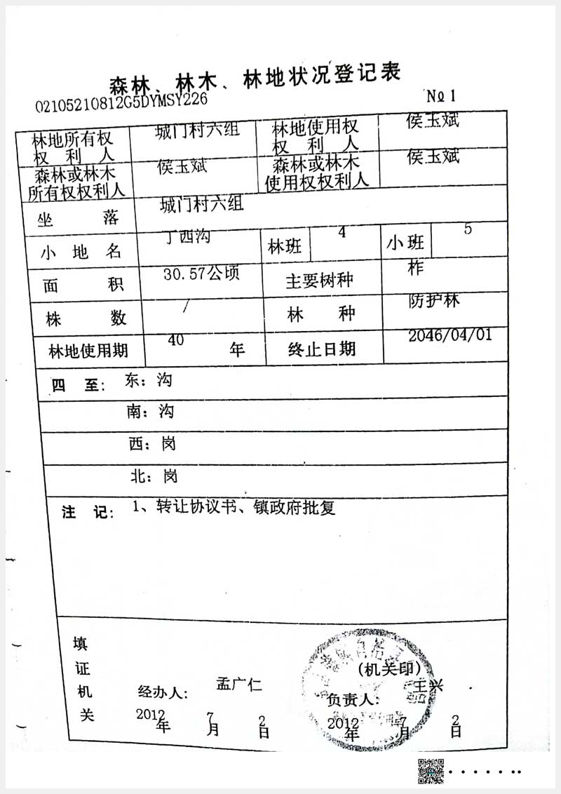 160號 本溪滿族自治縣城門村六組林權