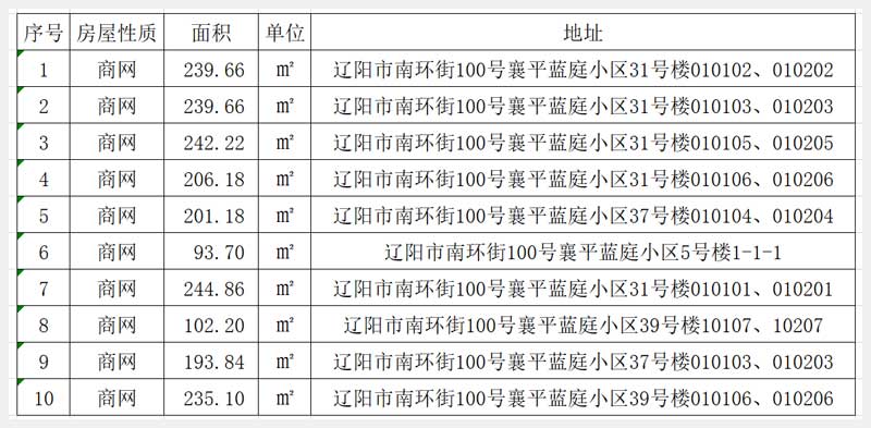 10號(hào) 遼陽市南環(huán)街100號(hào)襄平藍(lán)庭小區(qū)10處門市