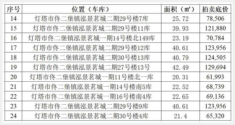 21號(hào) 遼陽市佟二堡鎮(zhèn)佟二堡村泓景茗城小區(qū)一期車庫