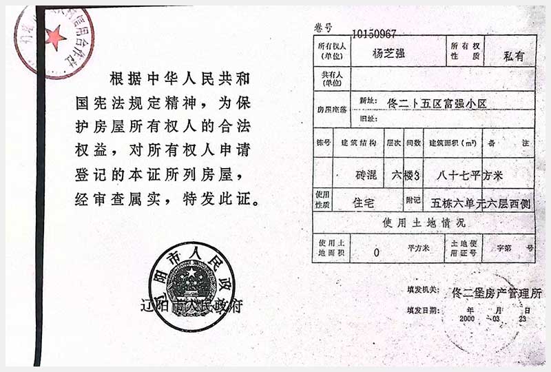 41號 燈塔市佟二堡鎮(zhèn)五區(qū)富強小區(qū)房產(chǎn)及土地使用權(quán)