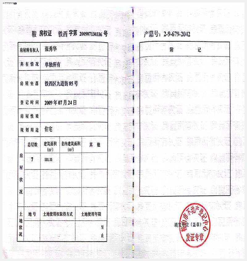 105號 鞍山市鐵西區(qū)九道街85號房產(chǎn)