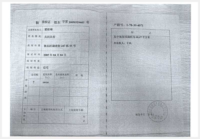 107號(hào) 鞍山市鐵東區(qū)湖南街347棟55號(hào)房產(chǎn)