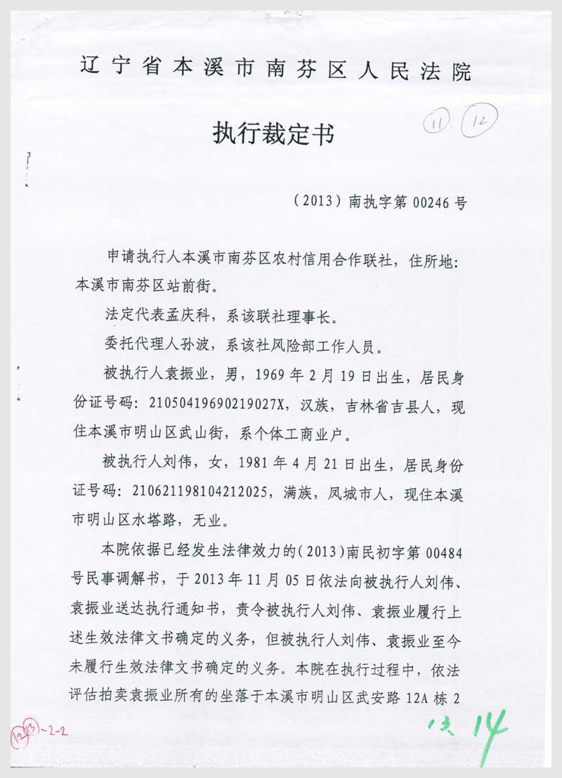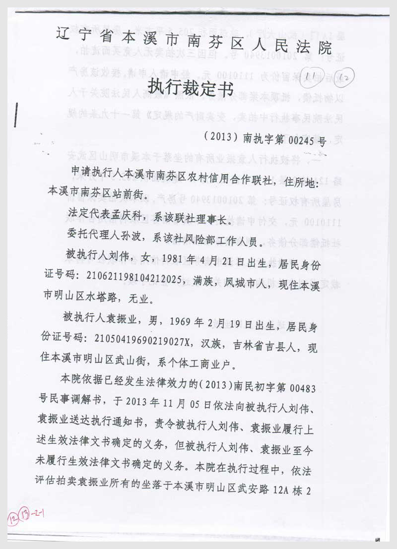 11-12號(hào) 本溪市明山區(qū)武安路12A棟2層1A門(mén)、1B門(mén)房產(chǎn)2處