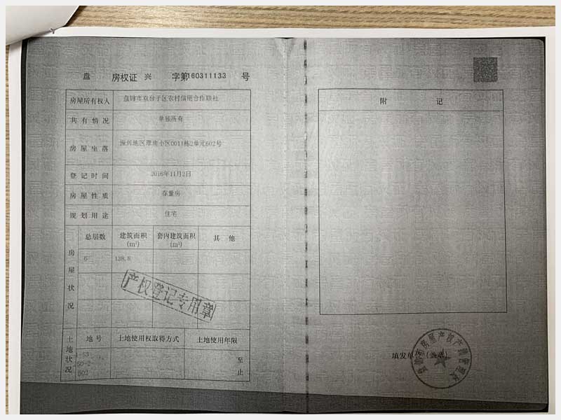 13號 盤錦振興地區(qū)翠南小區(qū)11號樓2單元602室房產(chǎn)(王霞)