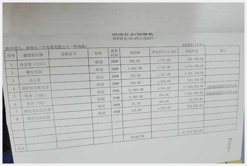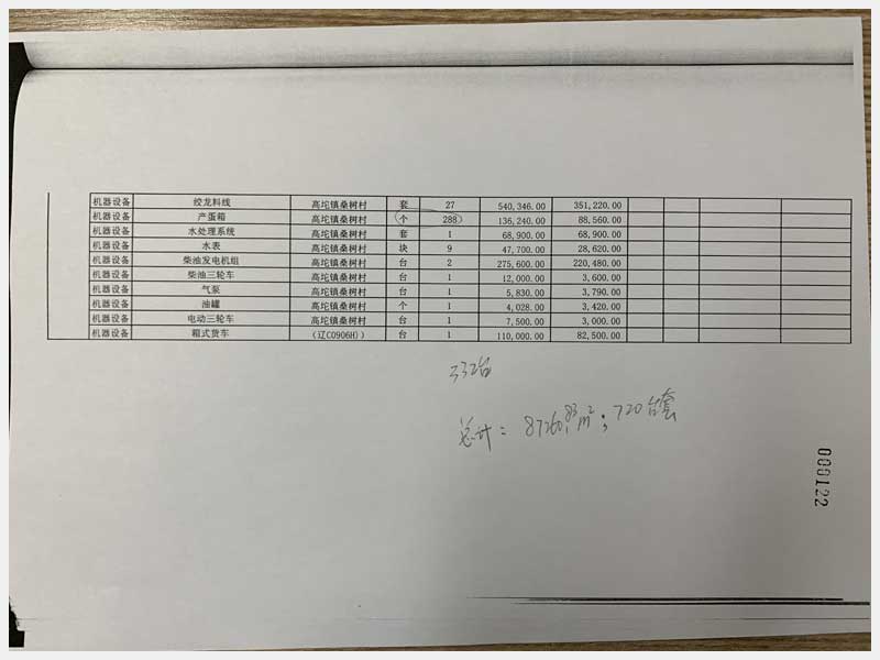 名稱:海城市高坨鎮(zhèn)桑樹村房產(chǎn)、構筑物及其他輔助設施 面積:房產(chǎn):3602.3㎡、雞舍:20960㎡ 瀏覽次數(shù):1668