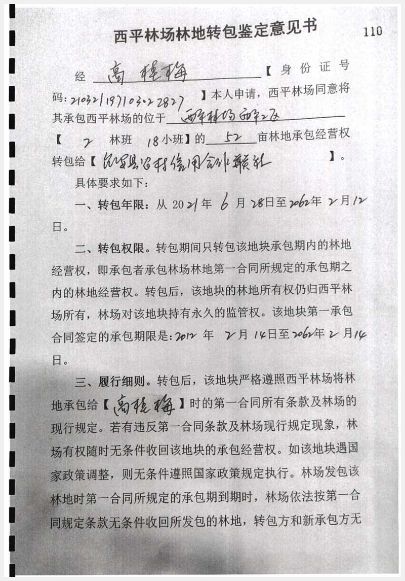 100號(hào) 臺(tái)安縣西平林場萬福寺北林地經(jīng)營權(quán)